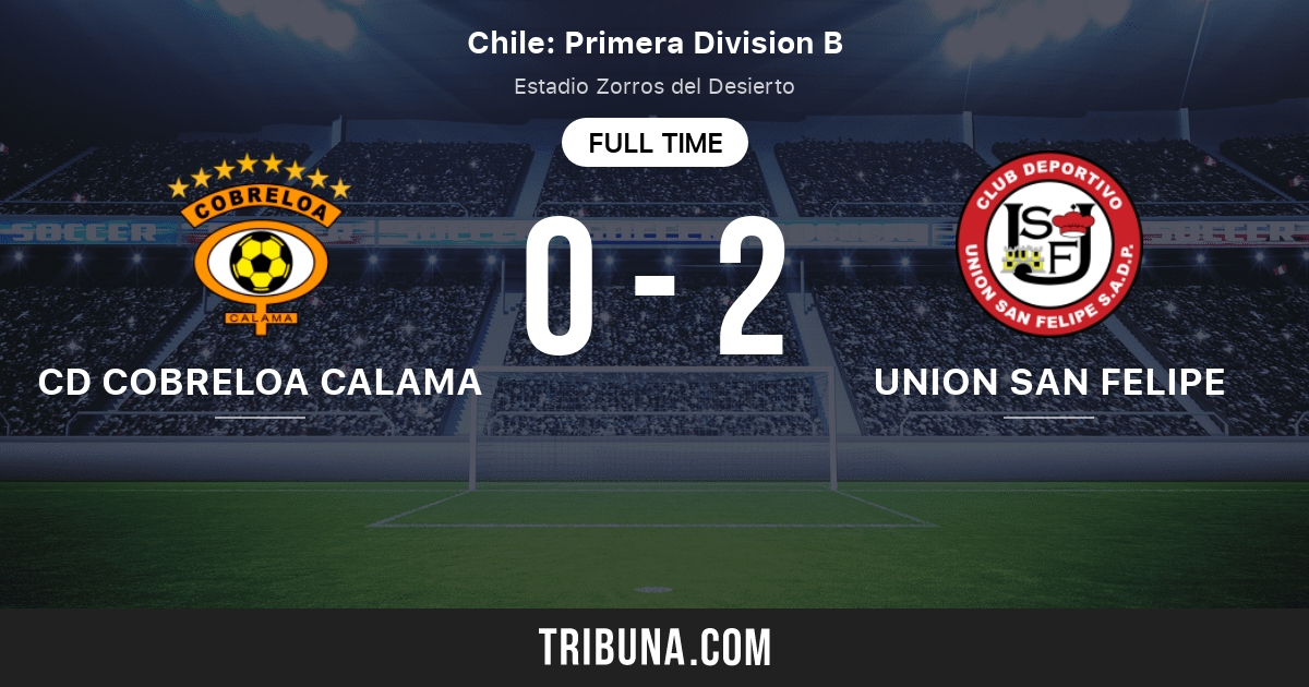 Cobreloa 2 - 1 Unión San Felipe View events. Compare Cobreloa and Union San Felipe. Unión San Felipe vs Cobreloa - Torneo Transición Primera B Chile 2021.