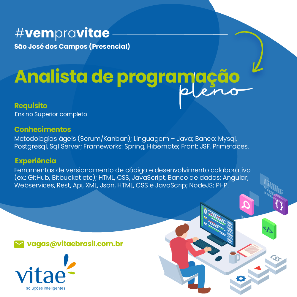 Vitae Brasil On Twitter Vaga Para Analista De Programacao Pleno E Analista De Programacao Pleno Temos Uma Vaga Aberta Na Vitabrasil Interessou Cumpre Os Requisitos Entao Envie Seu Curriculo Para Vagas Vitaebrasil Com Br