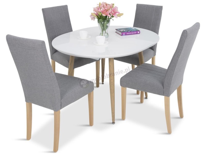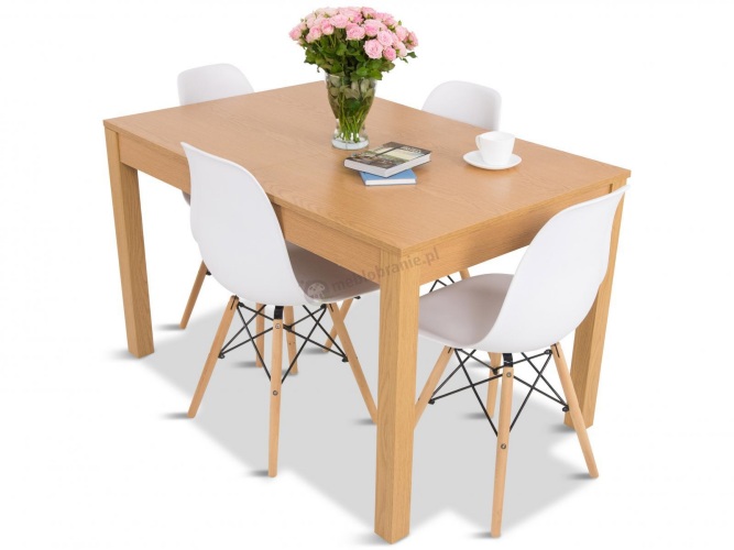 Wykonane z wysokiej jakości płyty meblowej są odporne na uszkodzenia wilgoć oraz kontakt z gorącymi naczyniami koniecznie stosuj podkładki zapewniające ochronę przed bezpośrednim kontaktem z gorącą powierzchnią. Stoły do jadalni w małym mieszkaniu niekoniecznie muszą być rozkładane ale jeśli jest taka możliwość to warto rozważyć tę opcję. Krzesła te mają taką konstrukcję że można je ustawić jedno na drugim żeby nie zajmowały miejsca.