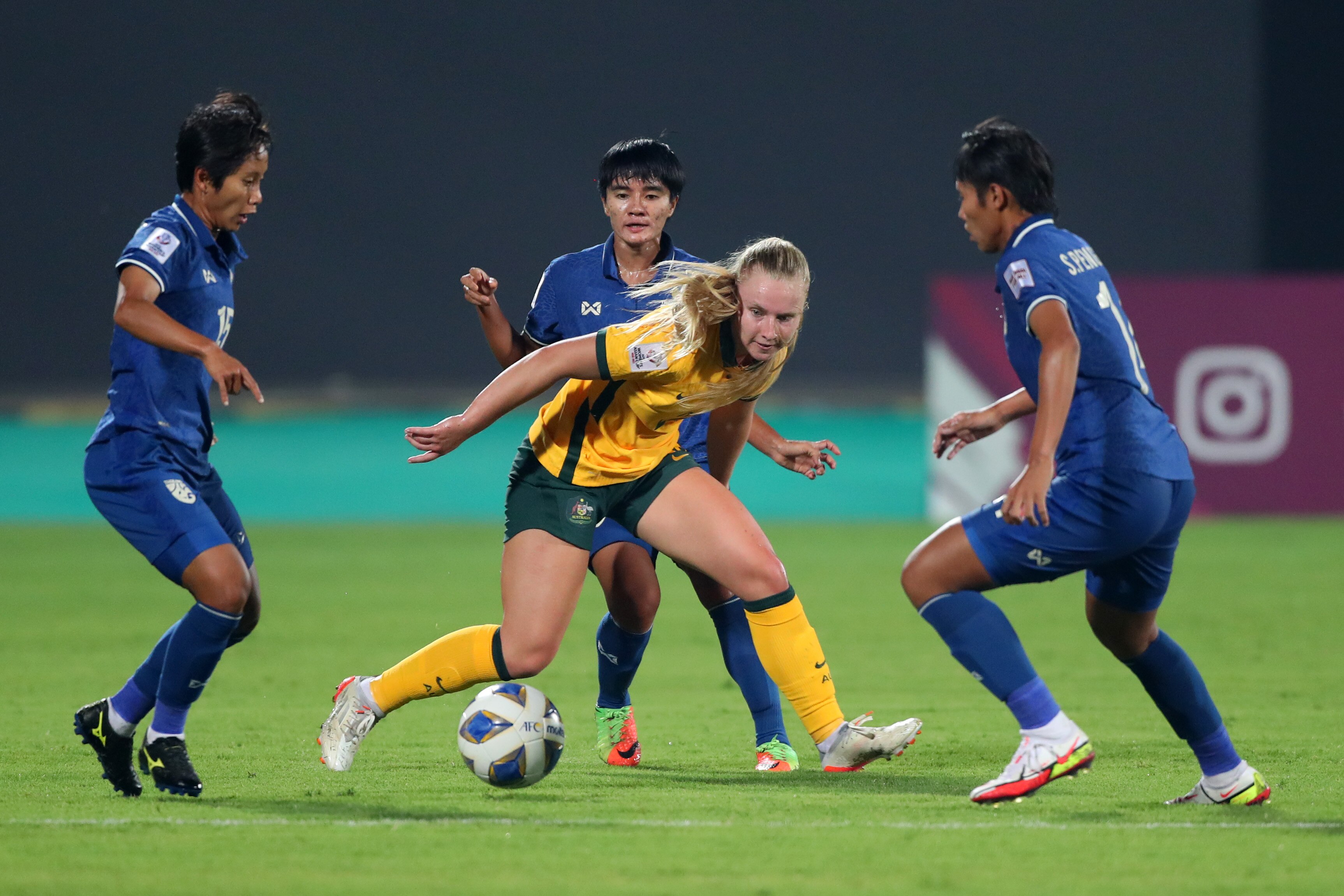 It wasnt pretty nor was it convincing but its all but passage sealed to the Womens Asian Cup quarter-finals for the Matildas. The Matildas will meet South Korea in the Asian Cup quarter-finals after sealing first place in Group B with a 2-1 win over Thailand in Mumbai.